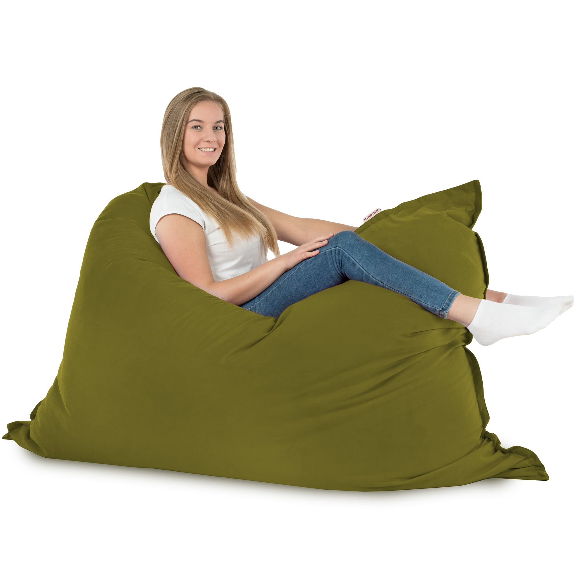 Verde perna puf xl pentru copii velvet Mareste